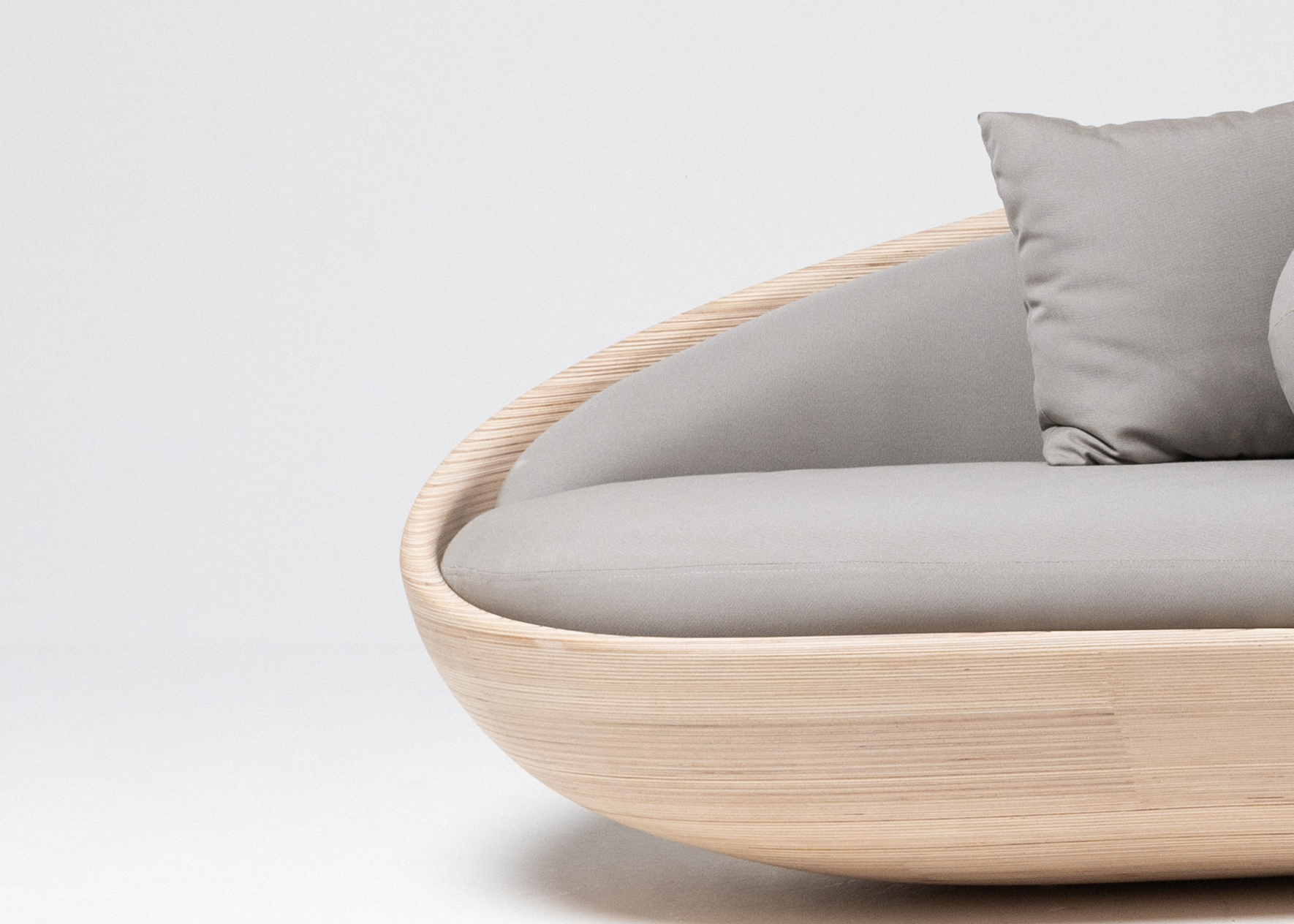 Sofa made with horizontal sections of laminated birch and spruce wood (18.5 mm thickness each). Matt finish with stain and exterior polyurethane coating