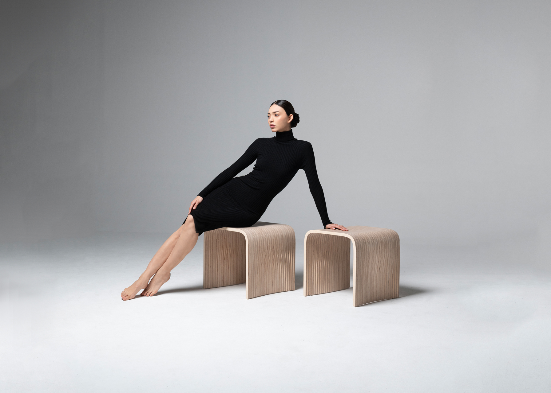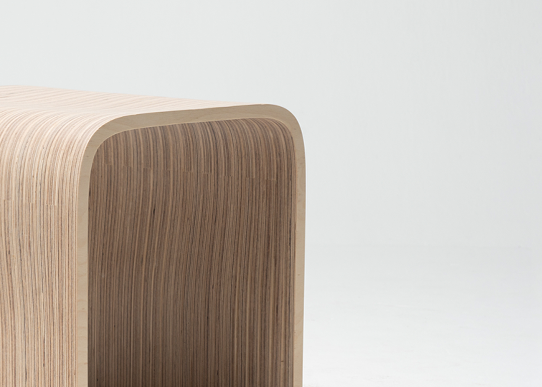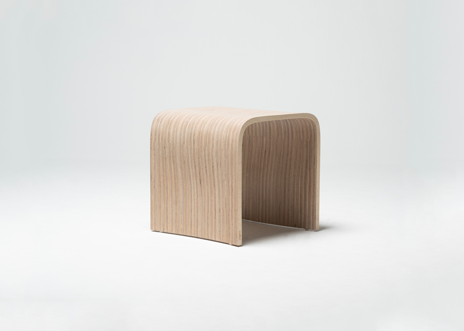 Stool made with 30 vertical sections of laminated birch and spruce wood (18.5 mm thickness each). Matt finish with stain and exterior polyurethane coating.
